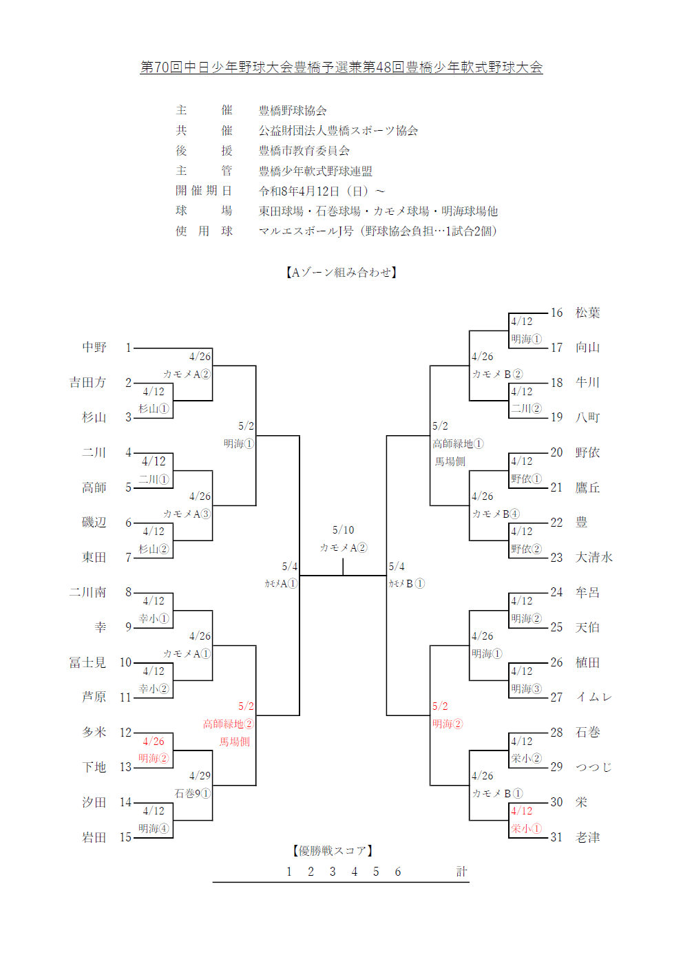 | 準優勝 | 牟呂S | 老津少B | |||