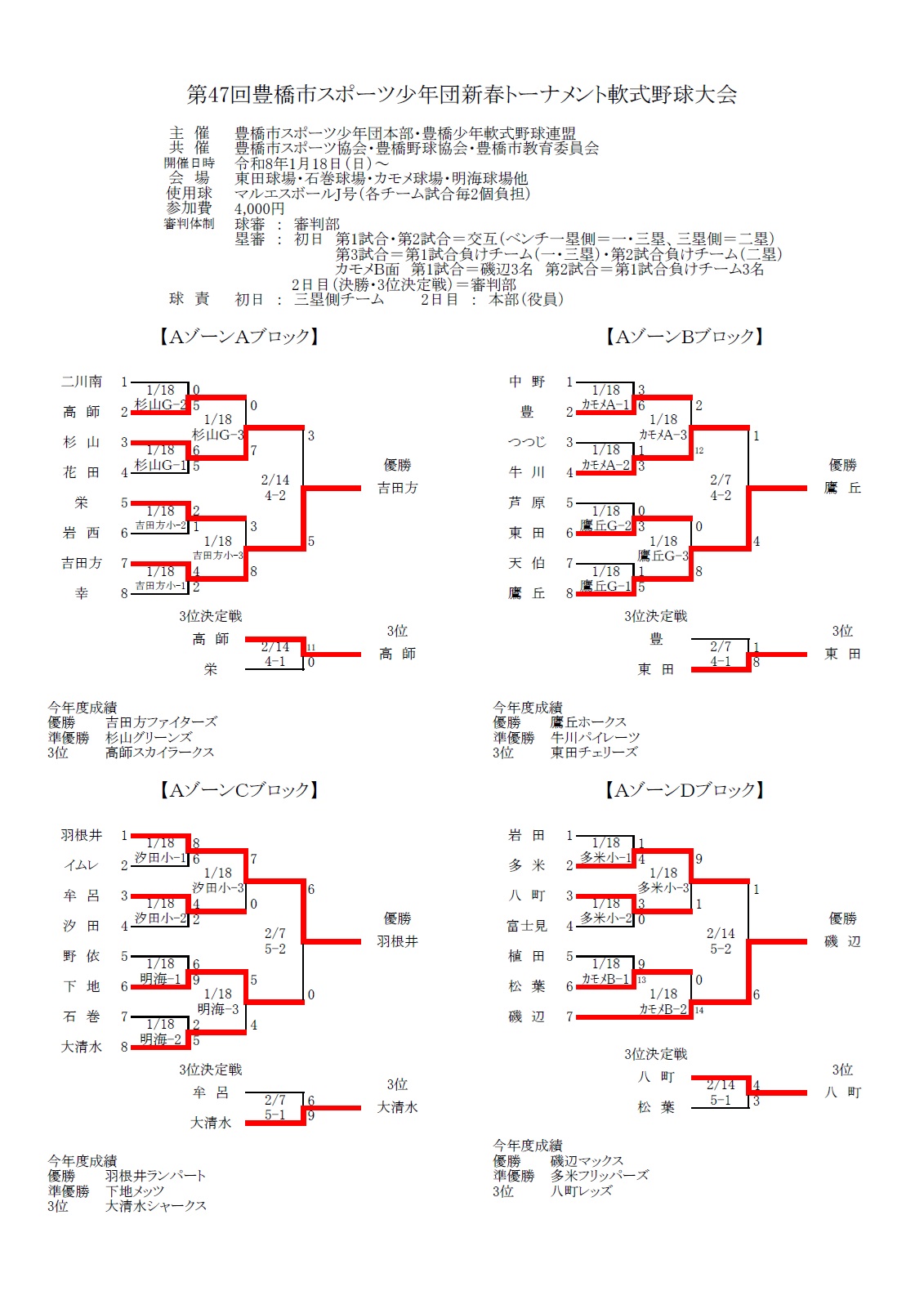 | 準優勝 | 岩西A | 牛川 | 多米 | 二川 | |||