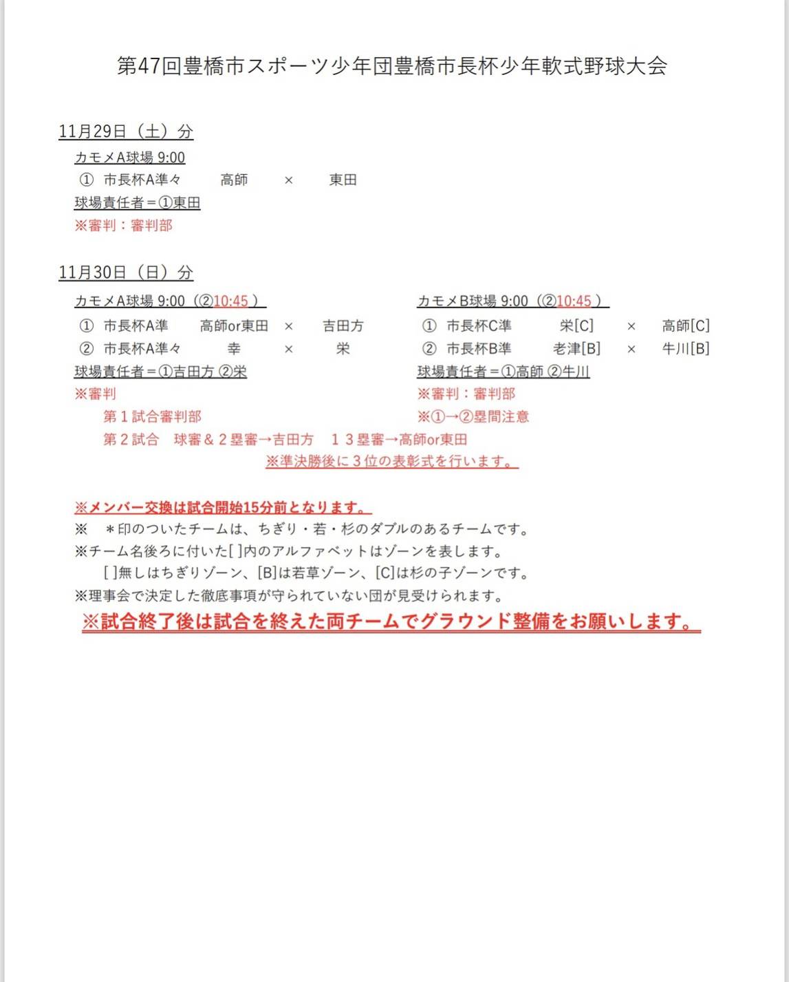 11月29日・30日市長杯組み合わせ