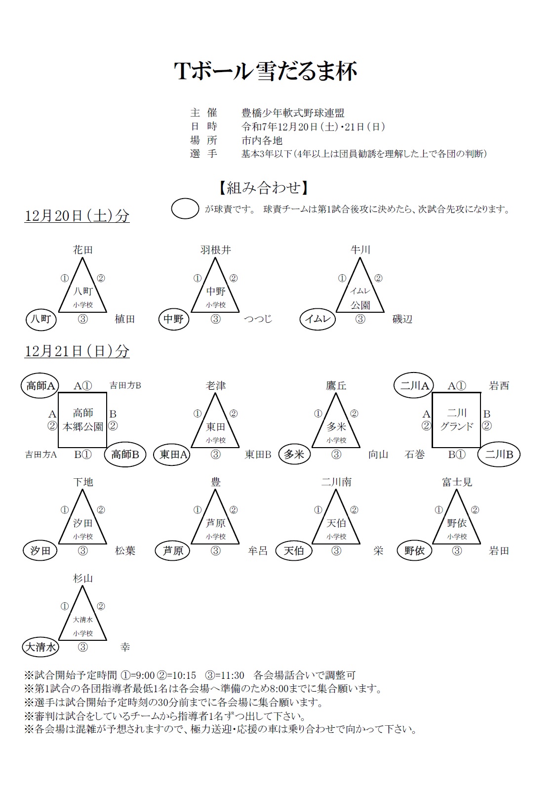 Tボール雪だるま杯組み合わせ一部変更