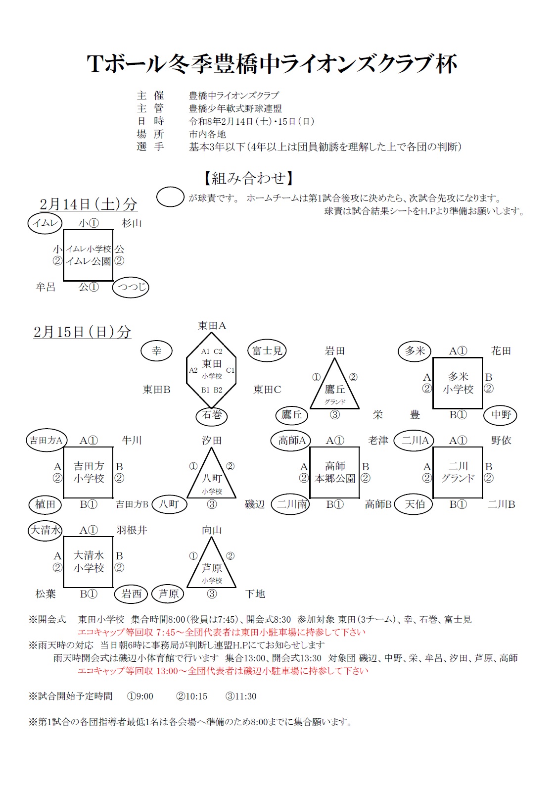 Tボール冬季豊橋中ライオンズクラブ杯組み合わせ