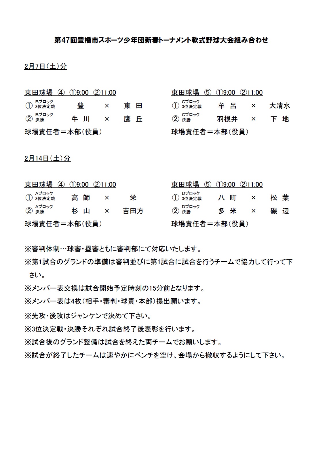 2月7日・14日新春トーナメント組み合わせ